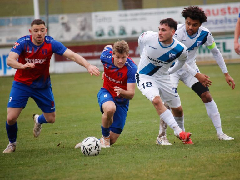 Der FSV Hollenbach hat im Abstiegskampf der Fußball-Oberliga ein Lebenszeichen gesetzt. In einem lange Zeit von Vorsicht geprägten Kellerduell besiegte die Mannschaft den FSV 08 Bietigheim-Bissingen nach zweimaligem Rückstand mit 3:2 (0:0). Den umjubelten Siegtreffer erzielte Luke Knapp in der fünften Minute der Nachspielzeit.